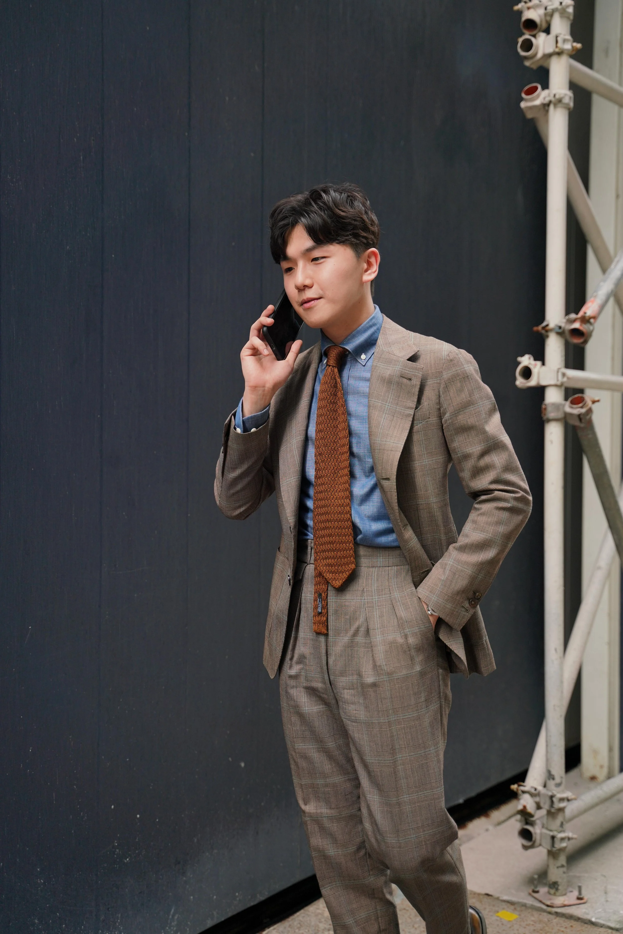 VINTAGE FOX BROTHERS. Signature NEAPOLITAN cut. LOW GORGE 4” NOTCH Lapels with 3 ROLL 2 SINGLE BREASTED FRONT