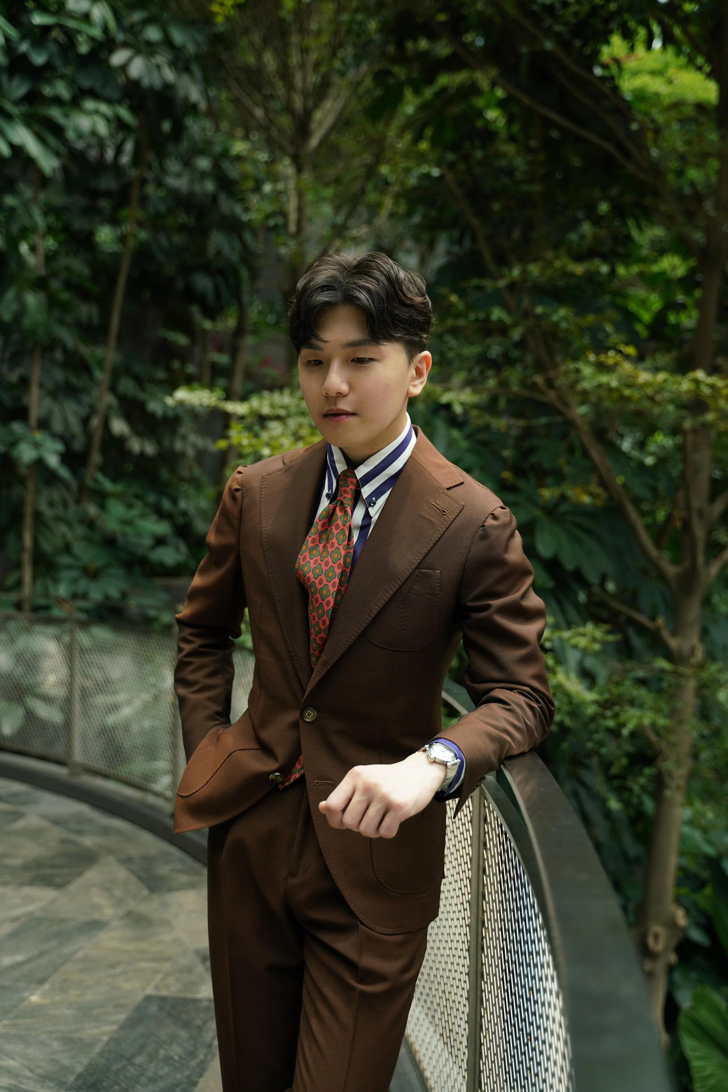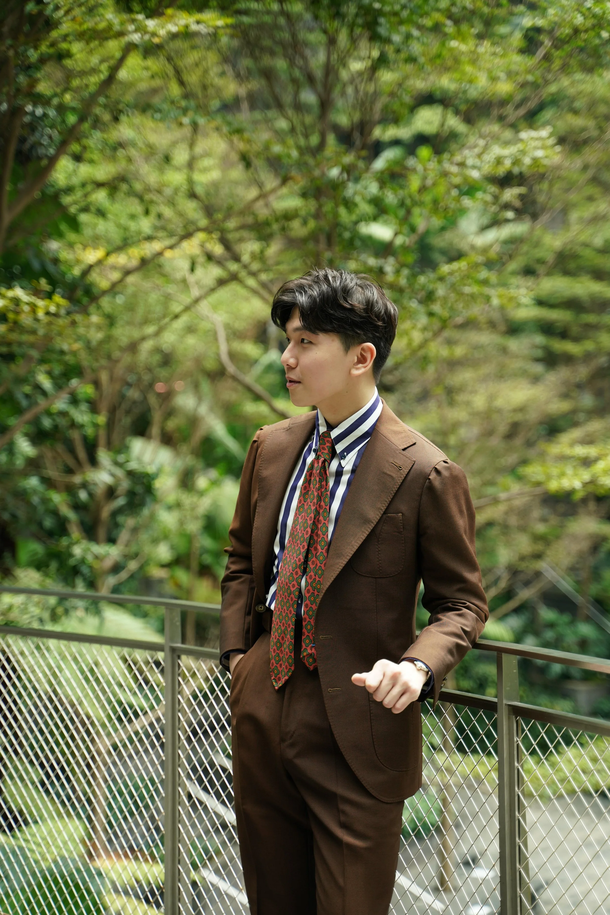 CACCIOPPOLI1920 LIMITED EDITION BROWN MOHAIR. Signature NEAPOLITAN cut. HIGH GORGE 4” NOTCH LAPELS 3 ROLL 2 SINGLE BREASTED FRONT