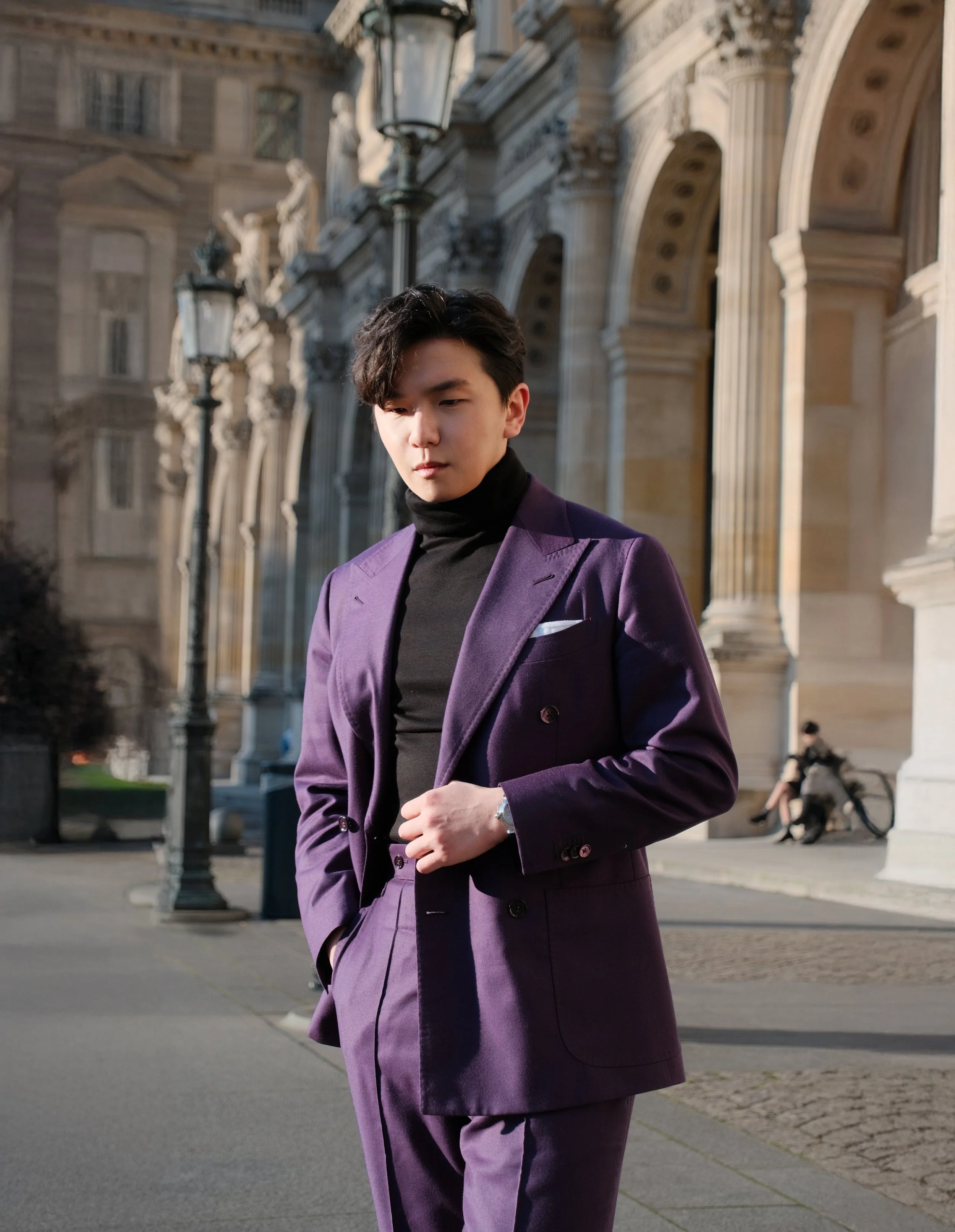 LOROPIANA SUPER 150s. Signature Neapolitan Cut. 4” PEAK LAPELS WITH 6:1 DOUBLE BREASTED FRONT
