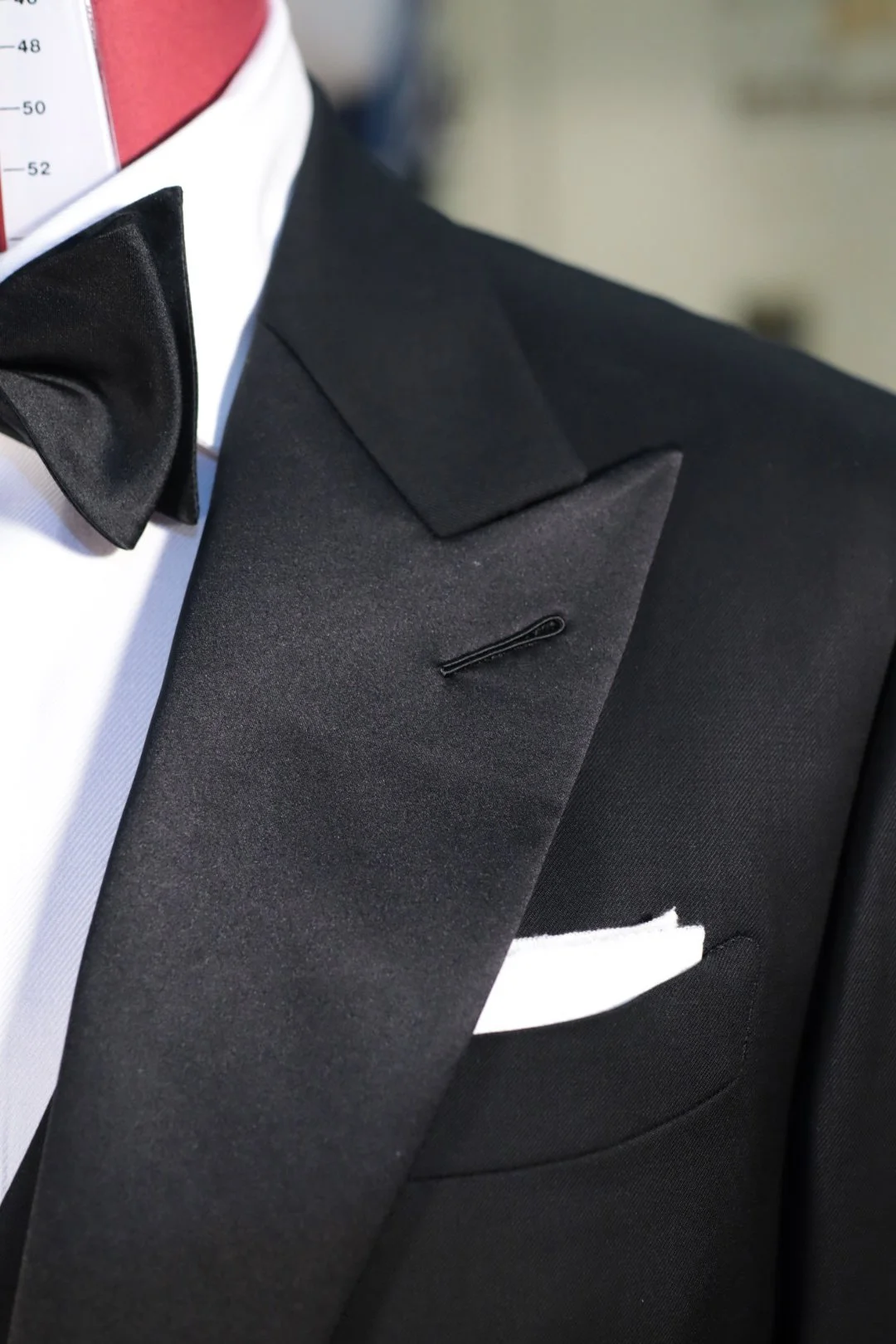THE GENTLEMAN Three Piece features standard 4’’ Peak Lapel which is the core fundamentals of a tuxedo suit. does not scream much attention in a black tie dinner, but isn’t that what a gentleman is?